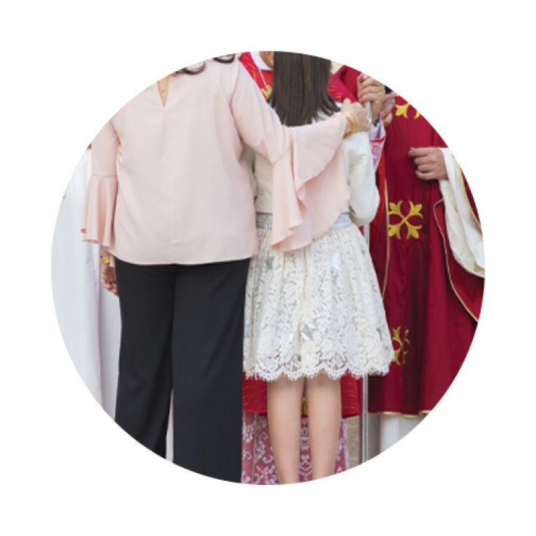 The preparation process for First Eucharist consists of grade-level Faith Formation sessions starting in September and completing sessions both at the parish and at home. Children must be in at least the 2nd Grade. Preparation also includes attending a parent/child retreat scheduled in March on a Saturday from 9-noon, completing 5 hours of service in the community, attending Mass weekly. The Sacrament will be celebrated as a group in early May.
